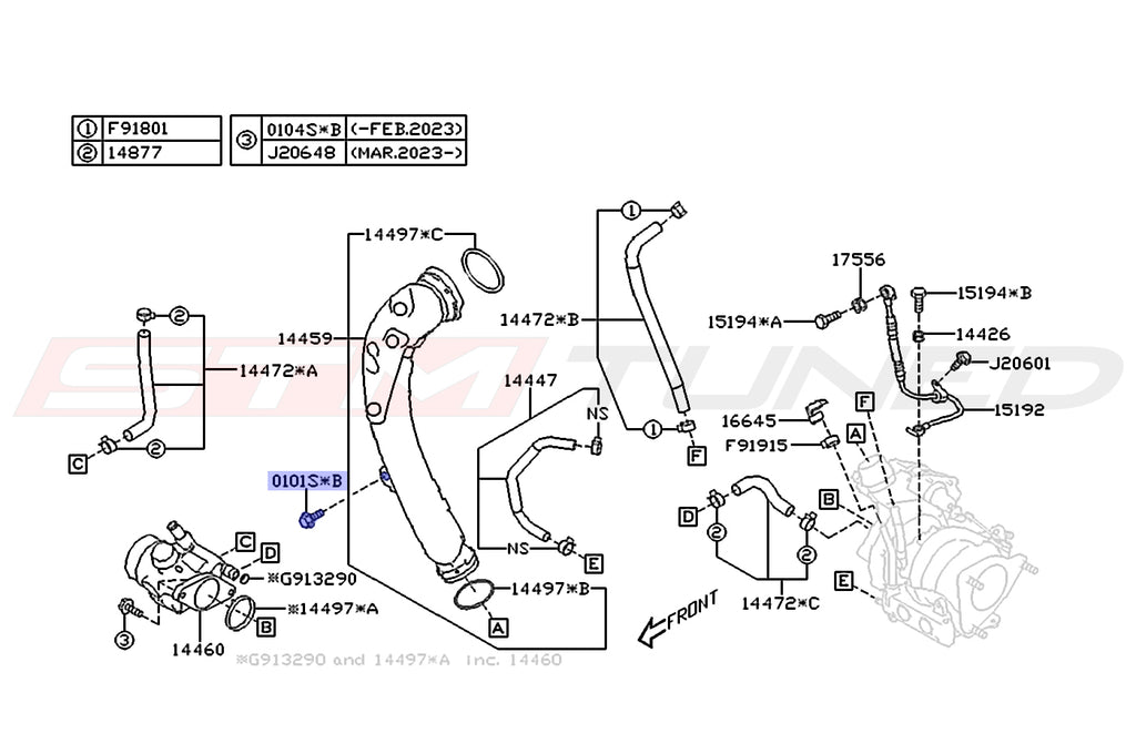 Genuine OEM Subaru factory replacement M10 mounting bolts for the 2022+ WRX top mount intercooler and turbo charge pipe. 2024 WRX diagrams are pictured for reference. 9 bolts are used in the TMIC diagram and 1 bolt for the turbo charge pipe. Sold individually as needed, price is for one bolt.