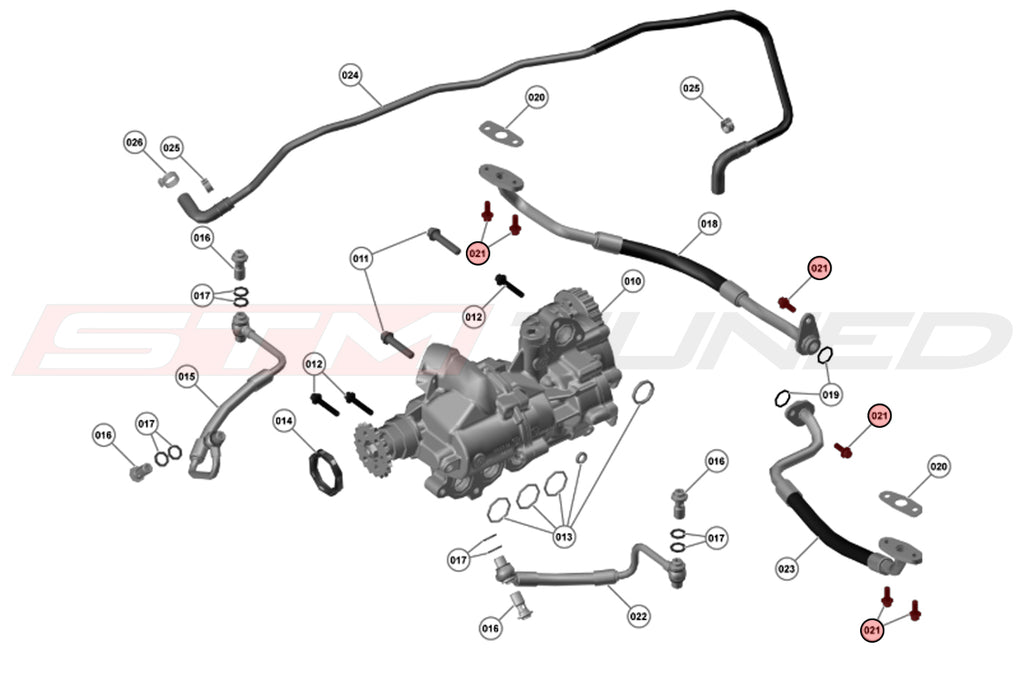 Genuine OEM McLaren 720S factory replacement turbo oil return (drain) line bolts. 6 of these are used in the diagram, 3 for each line. Sold individually as needed, price is for one bolt.