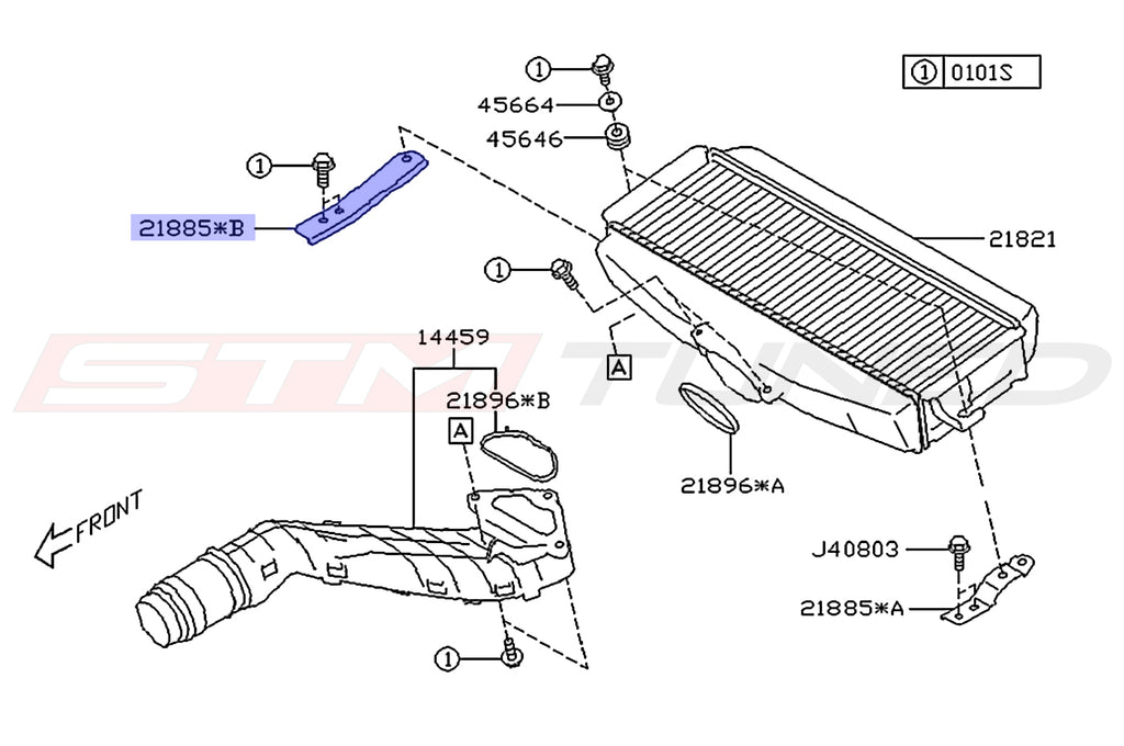 Genuine OEM Subaru factory replacement top mount intercooler mounting bracket for 2022-2025 WRX models. This is the longer of the two brackets located on the RH side. 2024 WRX diagram is pictured for reference. Also called a "stay."