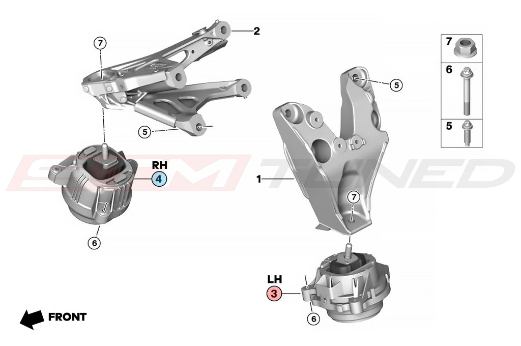 Genuine OEM BMW factory replacement engine mounts for F8X S55 M2/M3/M4 models. These are different for left and right sides. Sold individually as needed, price is for one motor mount.