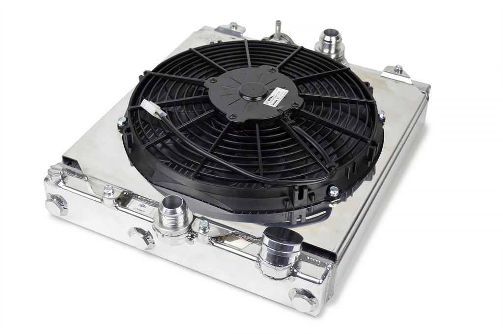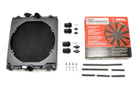 This CSF ultimate half-sized radiator kit fits Evo 7/8/9 and EG/EK Civic. Comes with an aluminum fan shroud and 12" SPAL fan. Includes screw-in hose outlet fittings that can be used with the factory hoses or for -16AN. Available polished aluminum or stealth black.