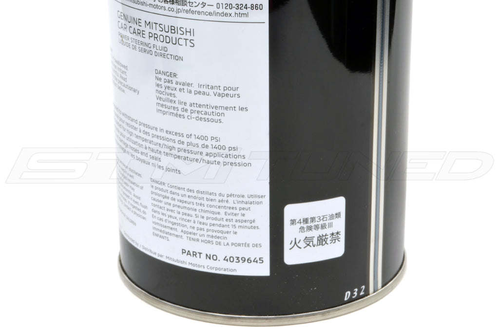 Genuine OEM Mitsubishi PSF power steering fluid. Recommended for the Evo 8/9 and Evo X models. Sold in a 34 ounce (1 liter) can.