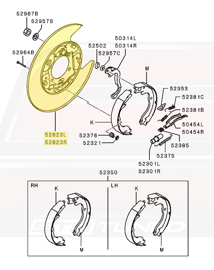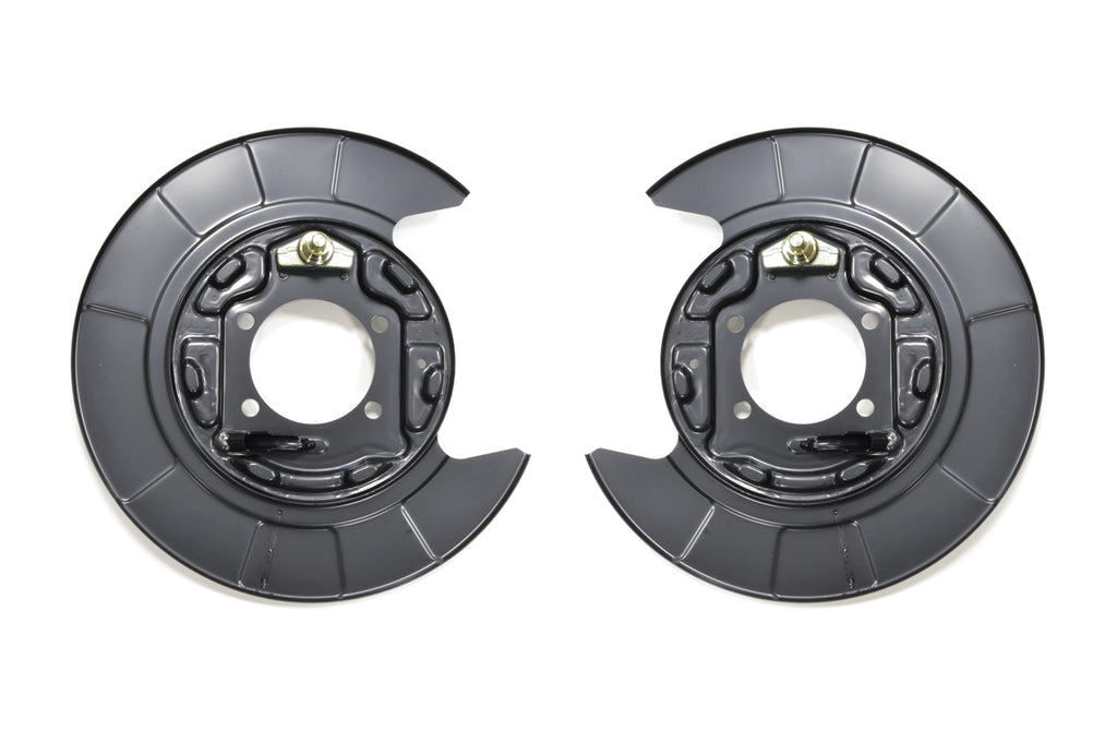 Genuine OEM Mitsubishi factory replacement rear brake backing plates for Evo X. These are different for left and right sides. Sold individually as needed, price is for one plate.