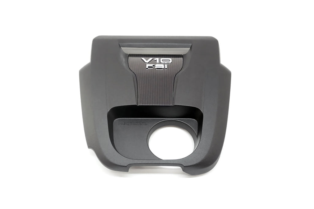 Genuine OEM Audi carbon fiber inlay V10 FSI engine cover fits 2017-2021 R8 models.