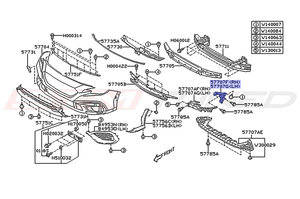 Genuine OEM Subaru front bumper to fender mounting brackets for 2022+ VB WRX. The 2024 WRX diagram is pictured for reference. Left and right sides are available. Sold individually as needed, price is for one bracket.