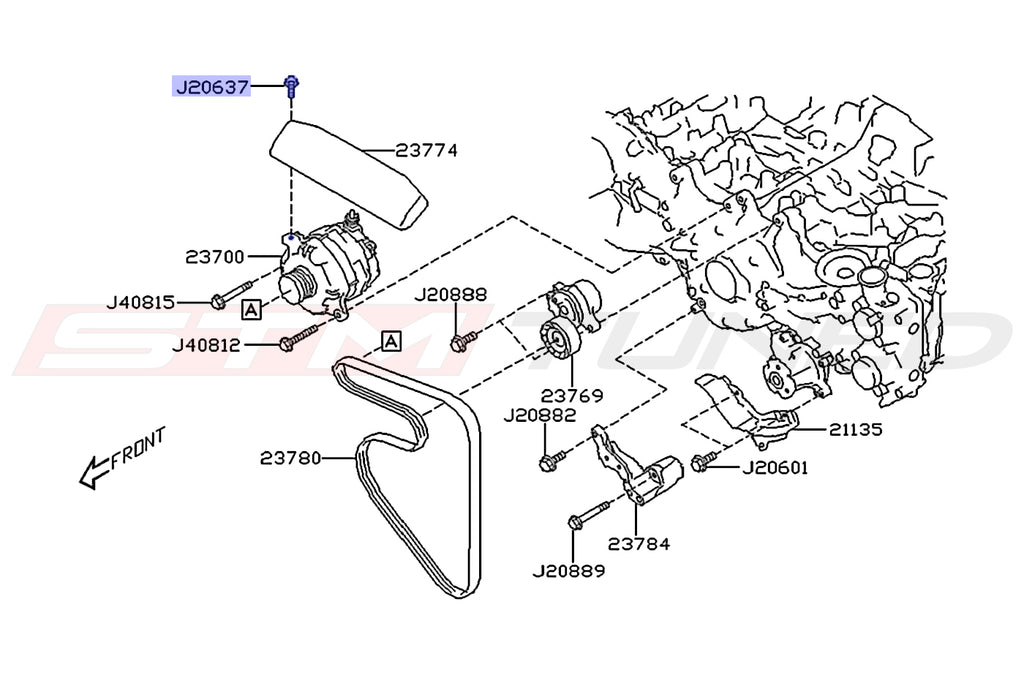 Genuine OEM Subaru factory replacement alternator belt cover bolt for 2022+ WRX. The 2024 WRX diagram is pictured for reference.