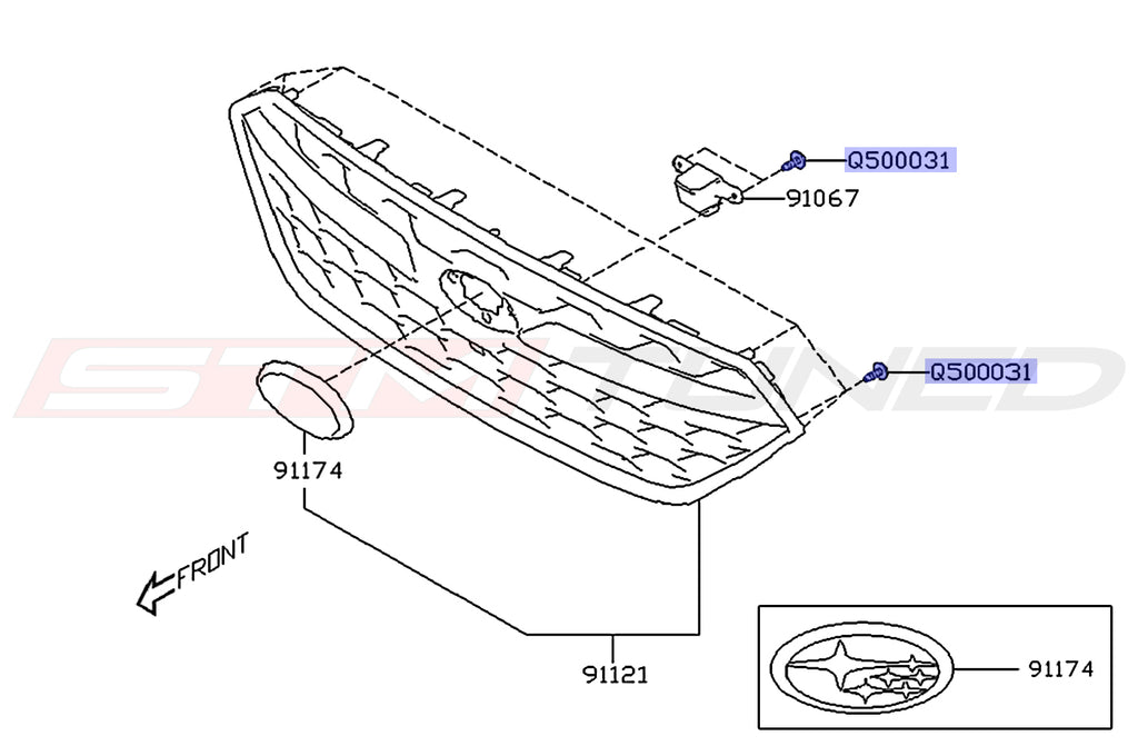 Genuine OEM Subaru front grille M4x12 screws for the 2022+ VB WRX. 2024 WRX diagram is pictured for reference. 8 screws are used in total for the grille and camera hole cap. Sold individually as needed, price is for one screw.