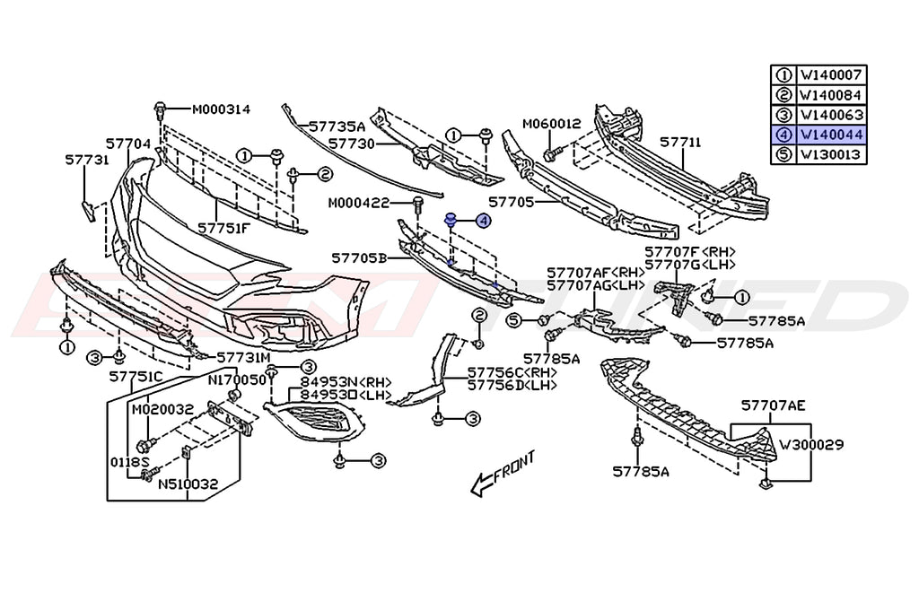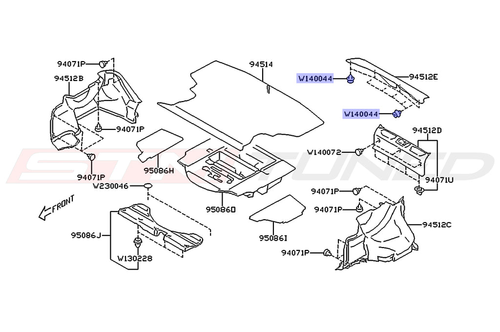 Genuine OEM Subaru trim clip for 2022+ VB WRX. The 2024 WRX diagrams are pictured for reference. Fits the front bumper upper metal brace, aka energy absorber plate and also the trunk lid carpet. Sold individually as needed, price is for one clip.
