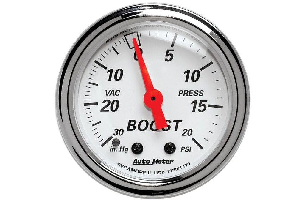 AutoMeter 52mm Arctic White Boost/Vacuum Gauge, 30 In. HG/20 PSI, Mechanical (1372)