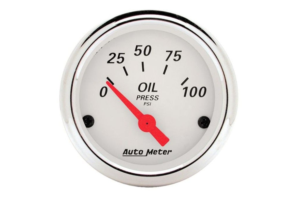 AutoMeter 52mm Arctic White Oil Pressure Gauge, 0-100 PSI, Air-Core (1327)