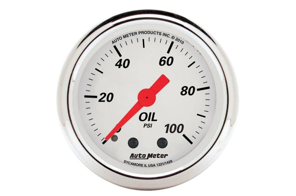 AutoMeter 52mm Arctic White Oil Pressure Gauge, 0-100 PSI, Mechanical (1321)