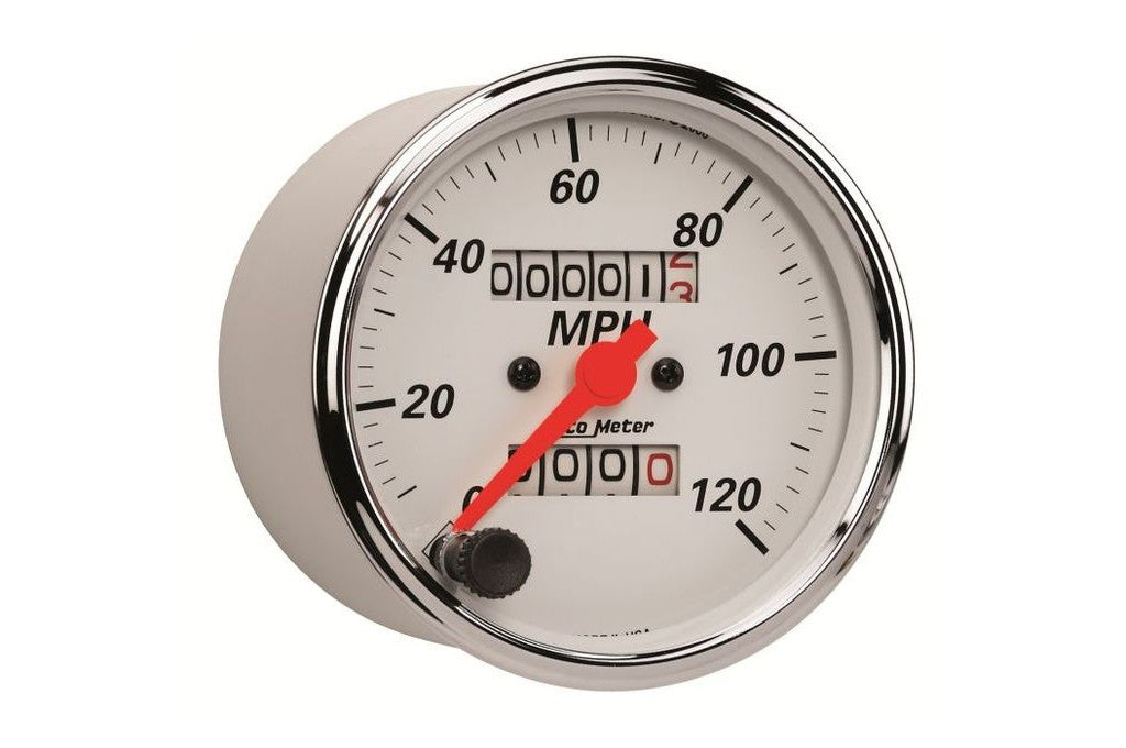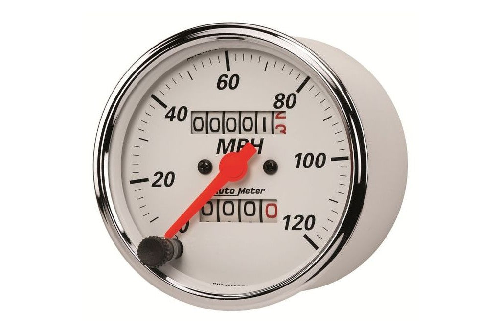 AutoMeter 3-1/8" Arctic White Speedometer Gauge, 0-120 MPH, Mechanical (1396)