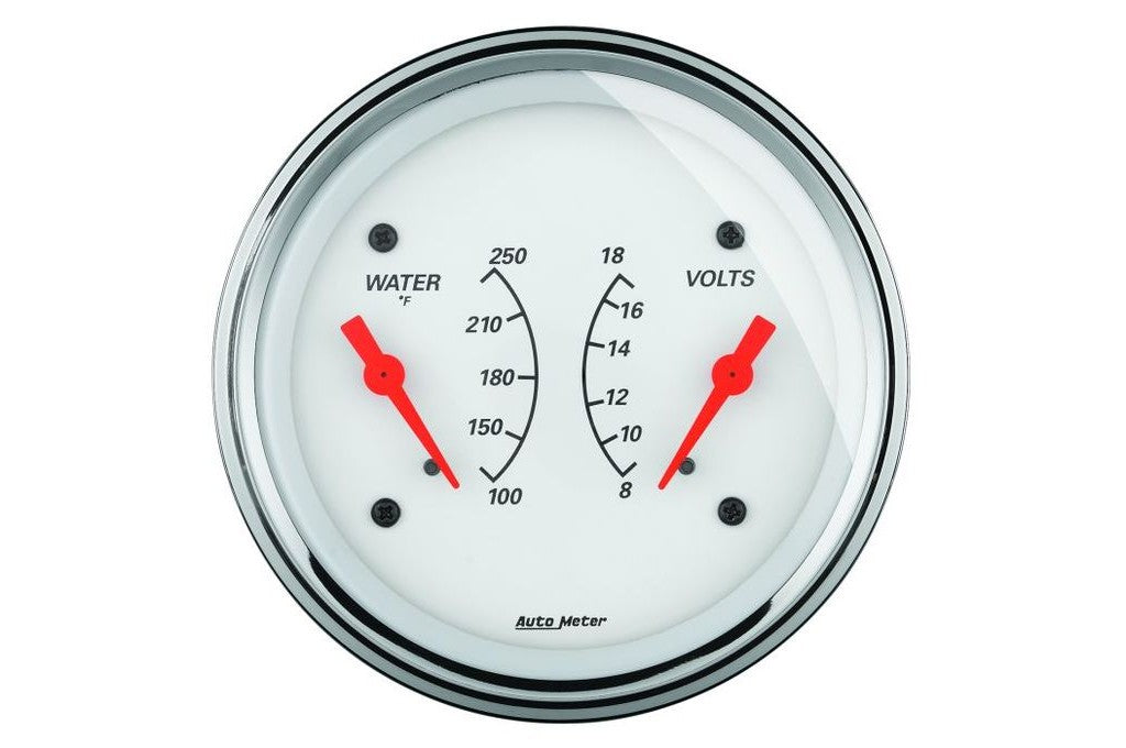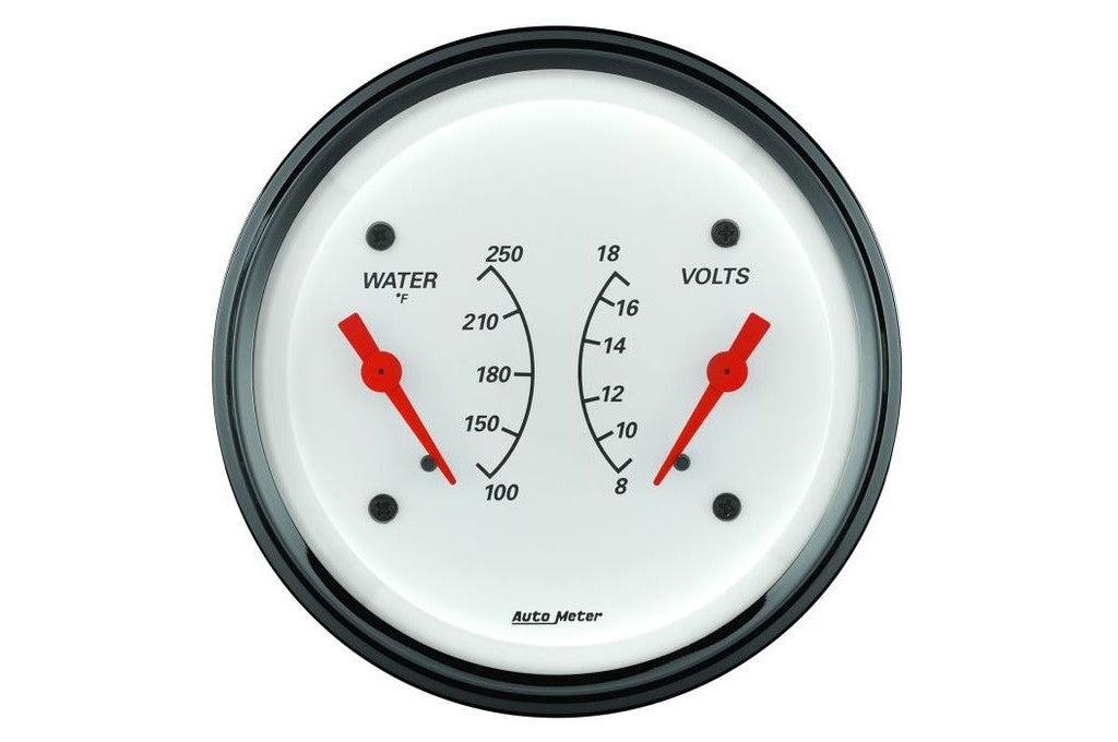 AutoMeter 3-3/8" Arctic White Dual Water Temp and Volt Gauge, 100-250°F/8-18V (1330)