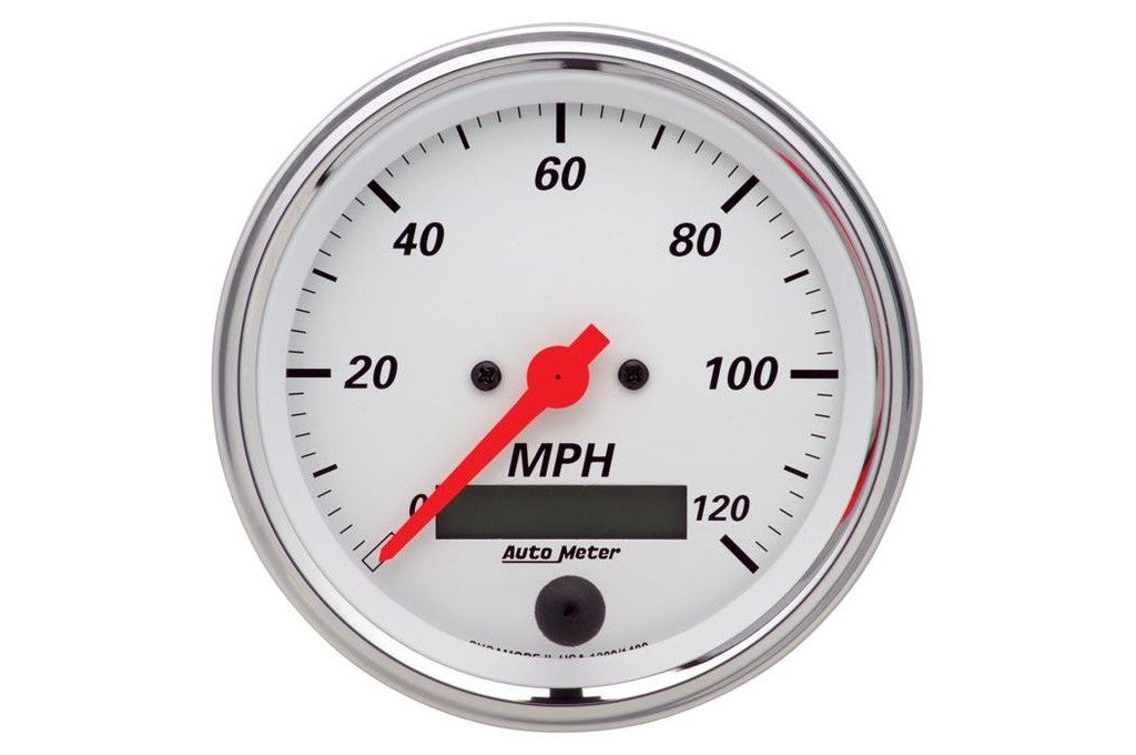 AutoMeter 3-3/8" Arctic White Speedometer, 0-120 MPH, Electric (1380)