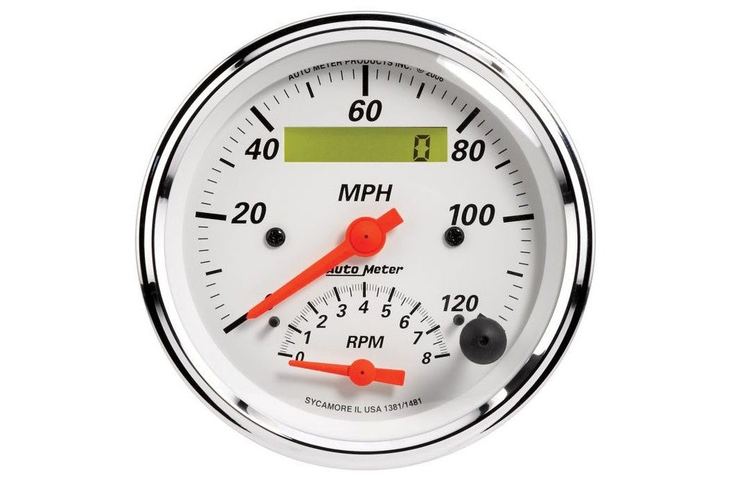 AutoMeter 3-3/8" Arctic White Tachometer/Speedometer Combo, 8K RPM/120 MPH, Electric (1381)
