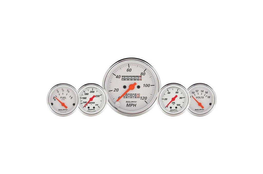 AutoMeter Artic White 5 Pc. Gauge Kit, 3-1/8" & 2-1/16", Mechanical Speedometer, Temp, Pressure (1311)