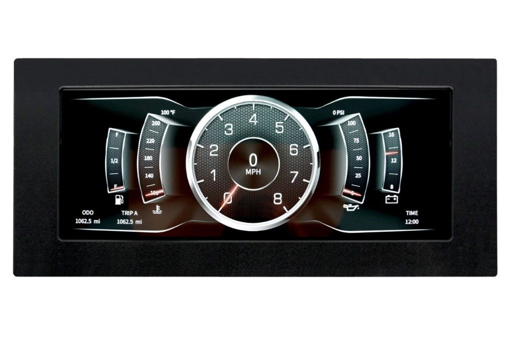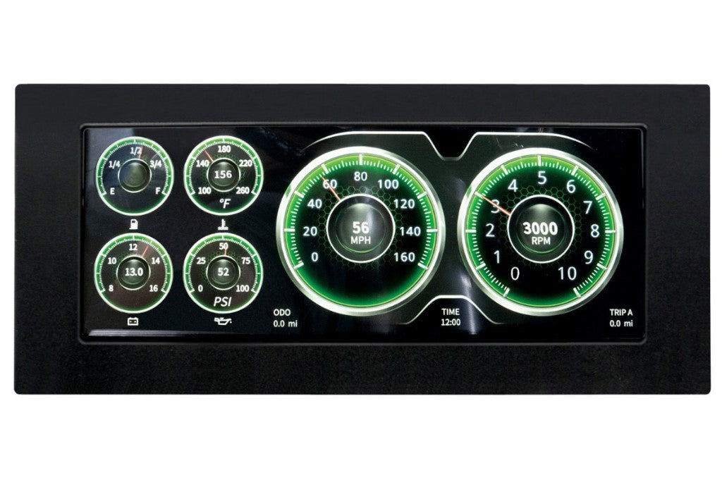 • Monitors speedometer, tachometer, fuel level, oil pressure, water temperature, and volts all in a high resolution and colorful display