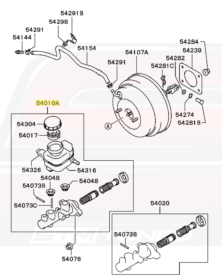 Genuine OEM Mitsubishi factory replacement brake master cylinders for USDM Evo 8/9 with ABS and for NON-ABS RS models.