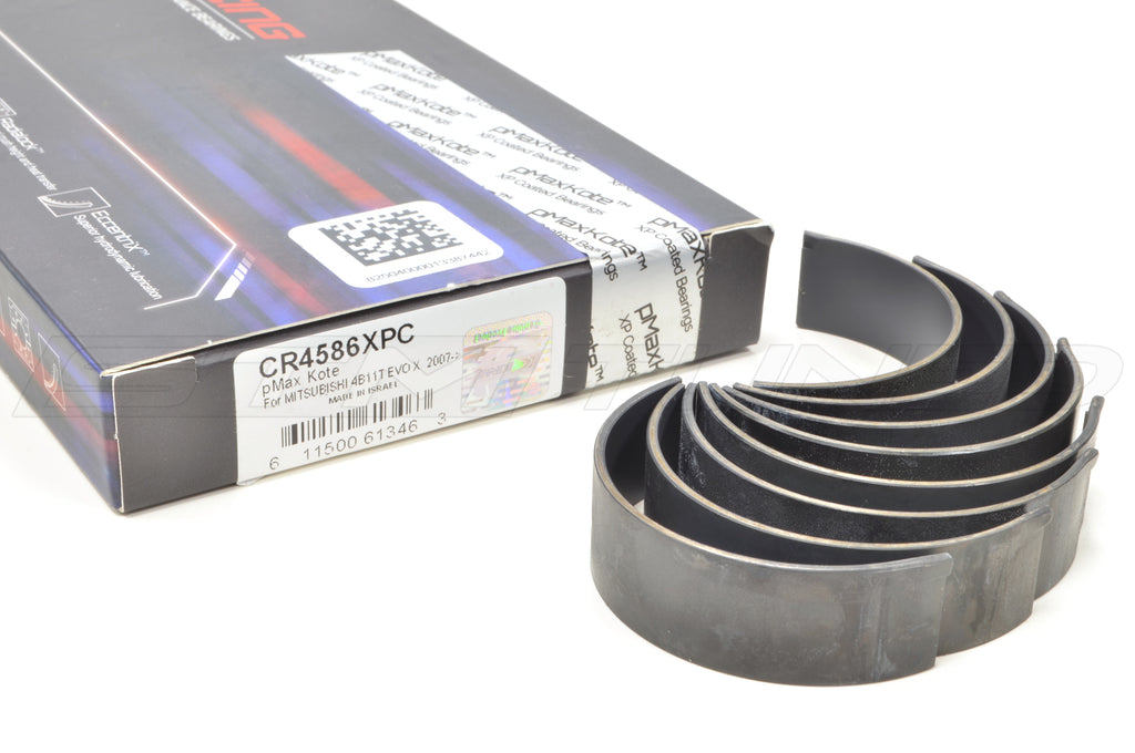 King race polymer pMaxBlack connecting rod bearings for Evo X and Ralliart 4B11 engines. Includes a full set of 8 bearings available in various sizes.