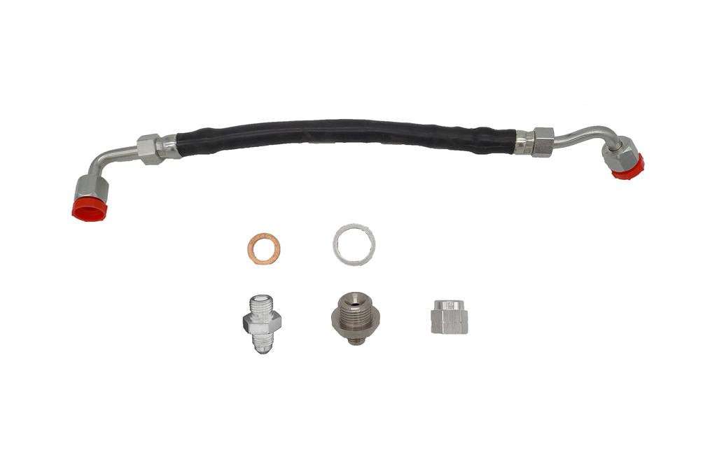 It is imperative that you do not use the factory Subaru oil feed line on your Forced Performance turbocharger. Doing so will cause failure in a very short period of time and FP is not liable for turbos destroyed due to improper lubrication.