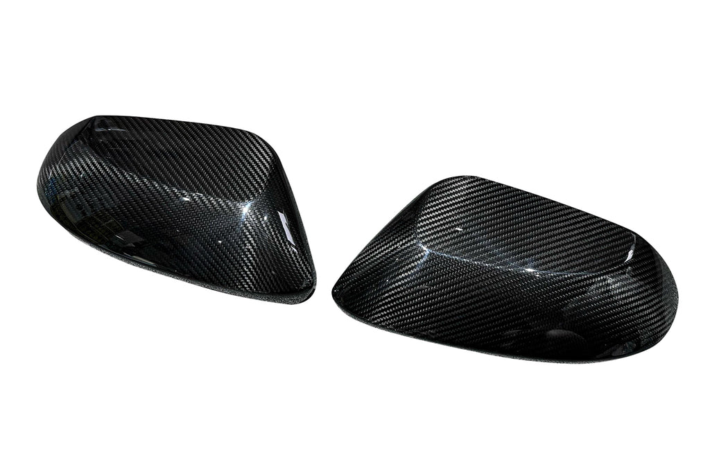 Rexpeed dry carbon fiber mirror covers for 2023+ GR Corolla installs directly over your factory mirrors with paper-thin 3M adhesive. Standard 2x2 carbon weave with a gloss finish.