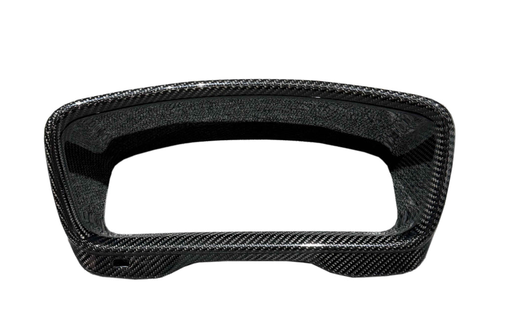 Rexpeed dry carbon fiber dash gauge cluster cover for 2023+ GR Corolla installs directly over your factory panel with paper-thin 3M adhesive. Standard 2x2 carbon weave with a gloss finish.