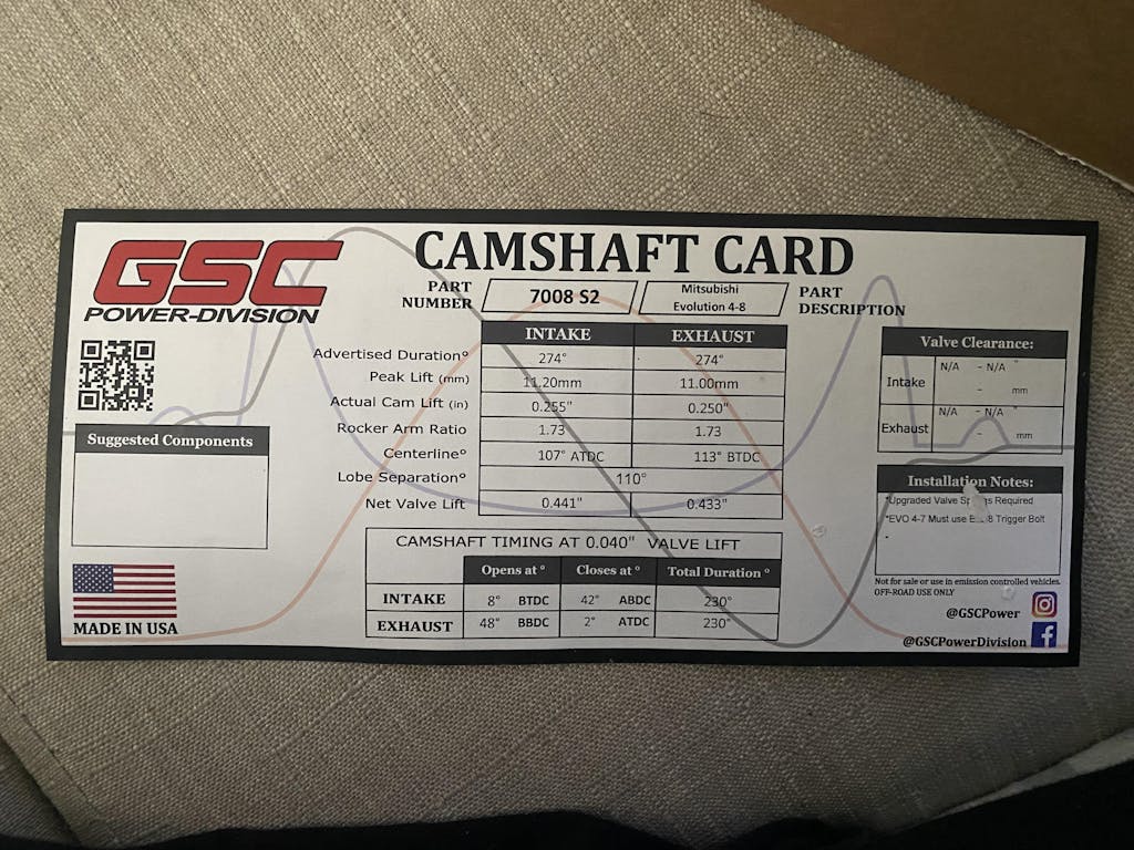 NOTE: Evo 9 GSC Cams are AVAILABLE HERE