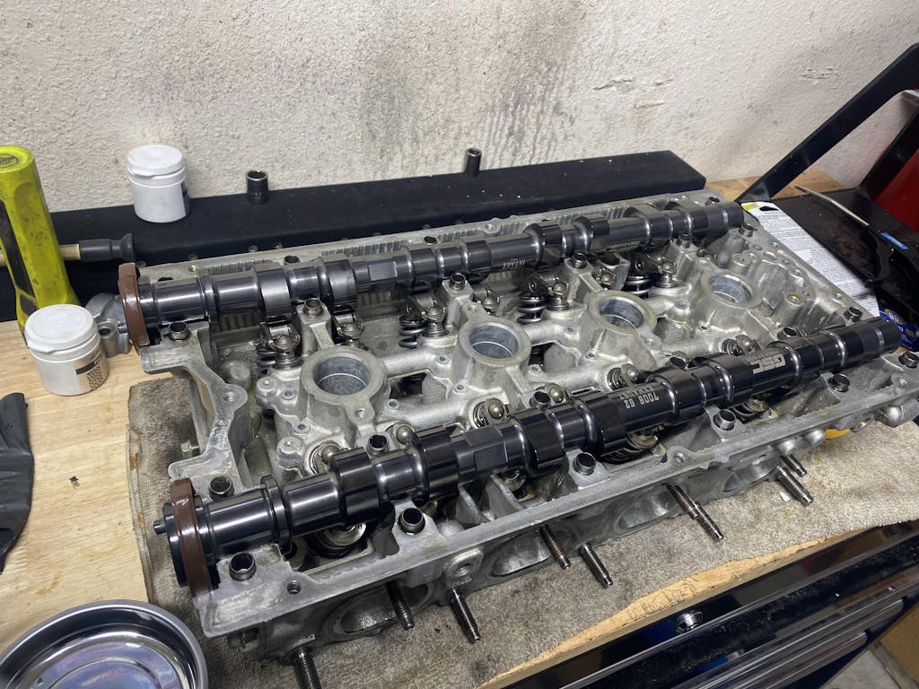 The peak lift of 12.0MM Intake and exhaust will require upgraded valve springs and a titanium retainer with special attention to seal to retainer clearance. With the lift of this profile it is suggested to only use the 5041/5040 Ti retainer and spring kits do to valve seal to retainer clearance. The 5041 can be used to 40+psi and the 5040 to 32psi on the R2 profile at 8500rpms without float or flutter issues. The profile will work fine on the OEM Rocker Arm and the Zero-tick lifter or with the OEM lifter. GSC has seen gains of 25-30 WHP over the S2 profile on the stroked applications with much more possible when used with a ported head and aftermarket intake manifold.