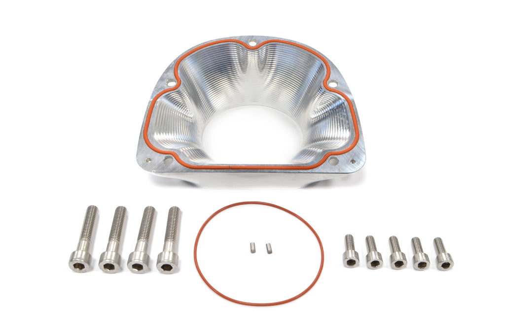 JM Fabrications replacement throttle body flange for the JMF billet DSM/EVO drag intake manifold. Comes with new hardware and o-rings.
