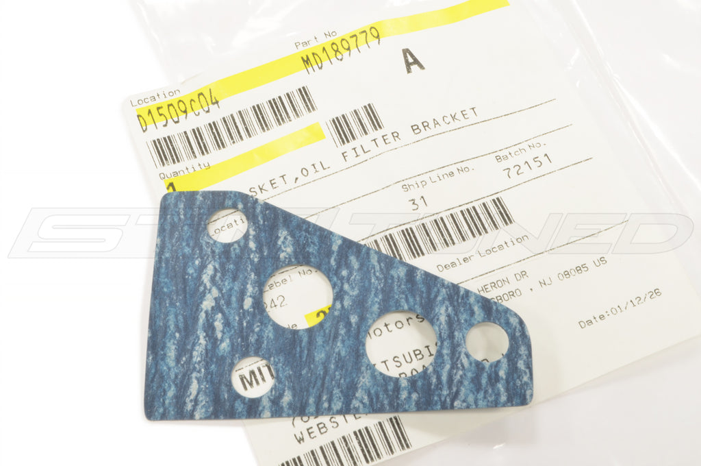 Genuine OEM Mitsubishi factory replacement engine oil filter adapter/bracket gasket for all 1991-1999 3000GT and Stealth turbo and non-turbo models.