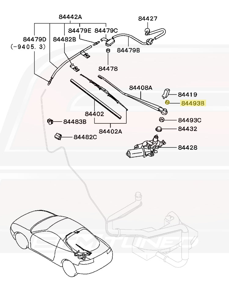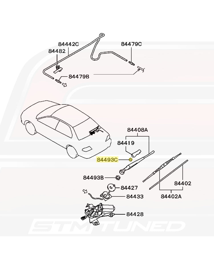 Genuine OEM Mitsubishi factory replacement rear wiper nut fits Evo 7/8/9 and 1G/2G DSM. See diagram images for exact placement.