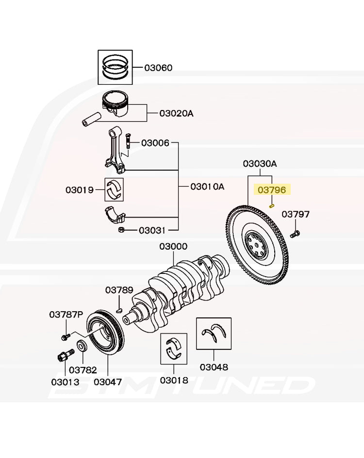 Genuine OEM Mitsubishi factory replacement flywheel to clutch cover dowel pin for the Evo 7/8/9 and 5-speed Evo X models. Not used on the Evo X SST flywheel. M8x18. 3 are used in the diagram. Sold individually as needed. Price is for one pin.
