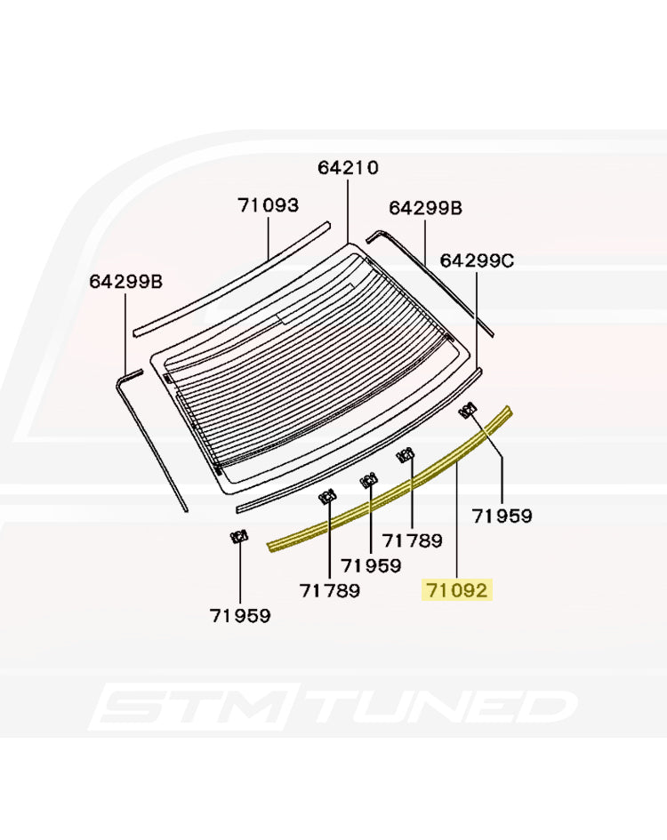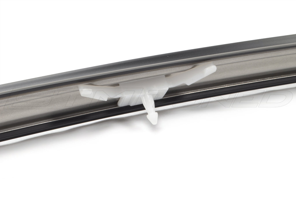 Genuine OEM Mitsubishi factory replacement rear window lower moulding for Evo 4/5/6 models. Also known as weatherstripping, weather stripping, channel strips, molding or trim. Includes 5 of the white clips on the backside as pictured.