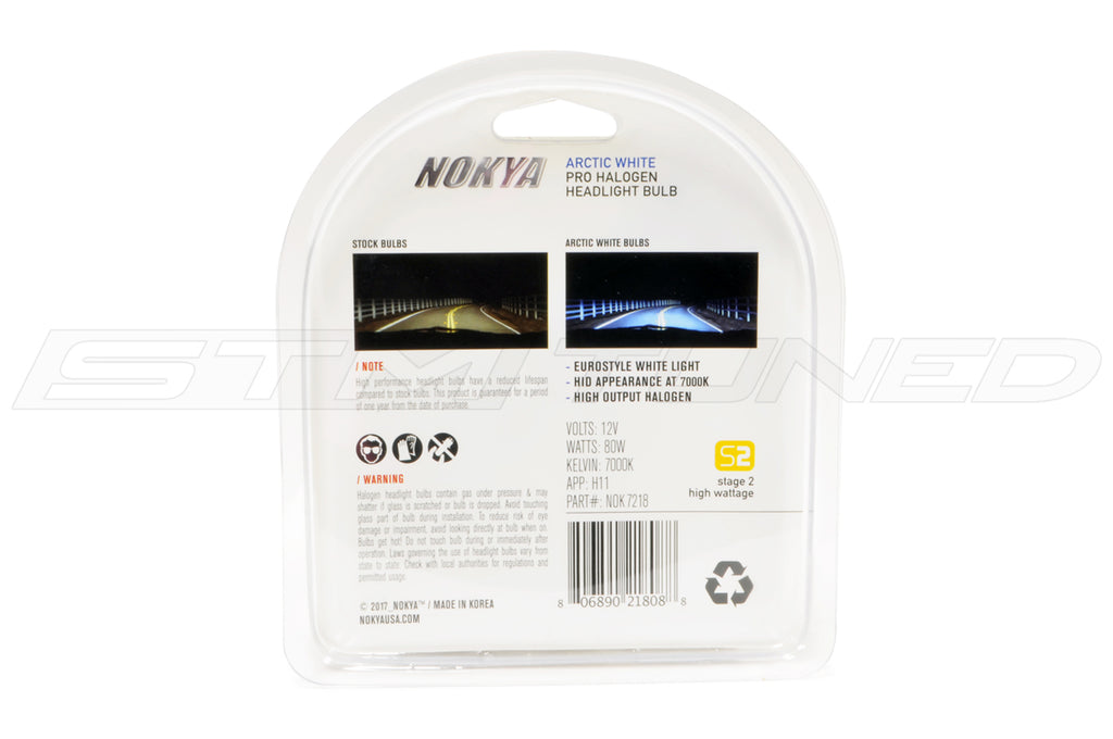 Nokya 7218 arctic white pro halogen 7000K bulbs can be used with the Evo 8/9 and Evo X fog lights. Also works with 2008-2014 Subaru WRX and STi models. Sold as a pair of 2 bulbs. Please confirm all specs before purchase.