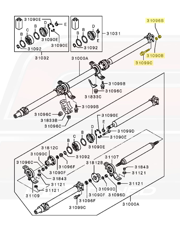 Genuine OEM Mitsubishi factory replacement driveshaft to rear diff nut and bolt kit for Evo X. STM sells this as a complete kit of 4 OEM bolts, washers and nuts. See diagram images for exact placement.