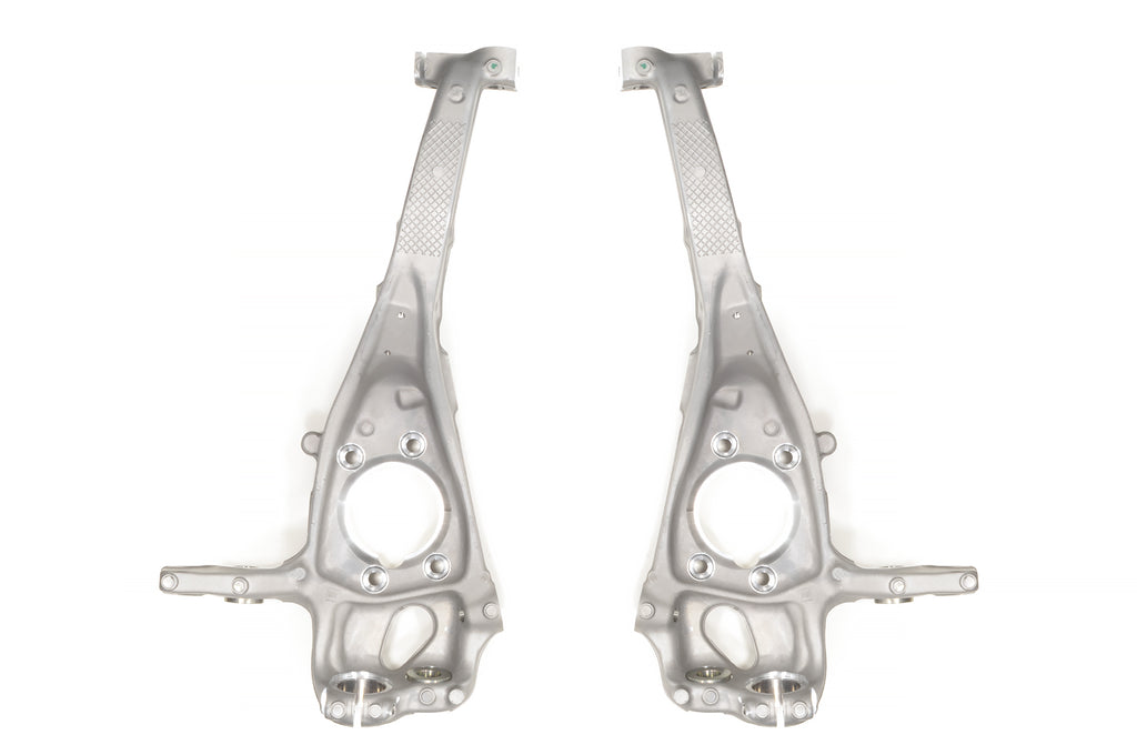 Genuine OEM Porsche factory replacement left and right front steering knuckles for 2015-2024 Porsche Macan models without black calipers. Sold individually as needed, price is for one knuckle.