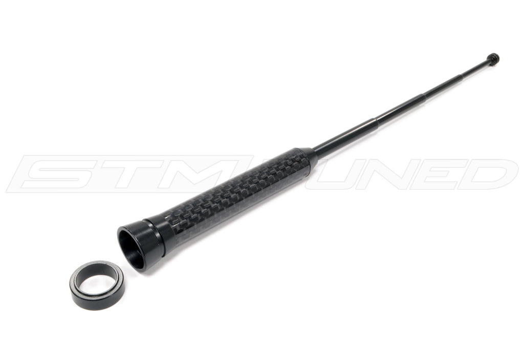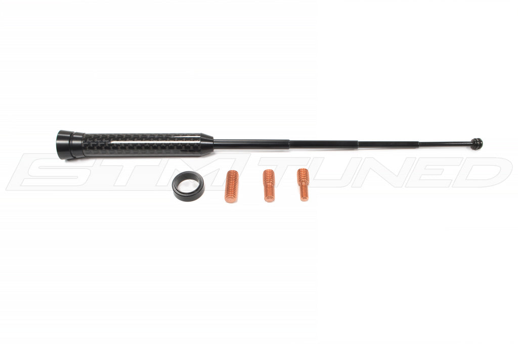 The Rexpeed carbon fiber antenna can be used with Evo 7/8/9, Evo X, S2000 and 08-14 WRX/STi models. It includes different sized screws to match your factory base and a spacer if needed. The antenna can be used in short form or fully extended if you need a better radio signal.