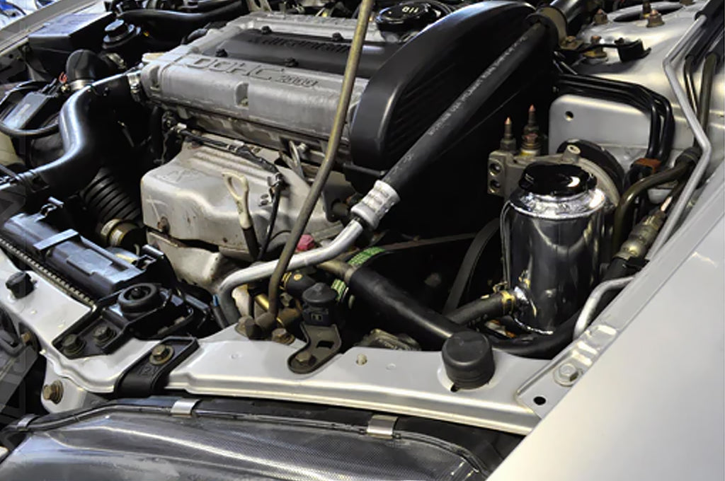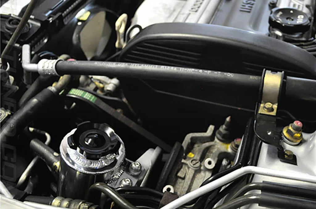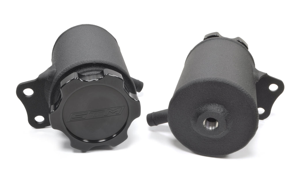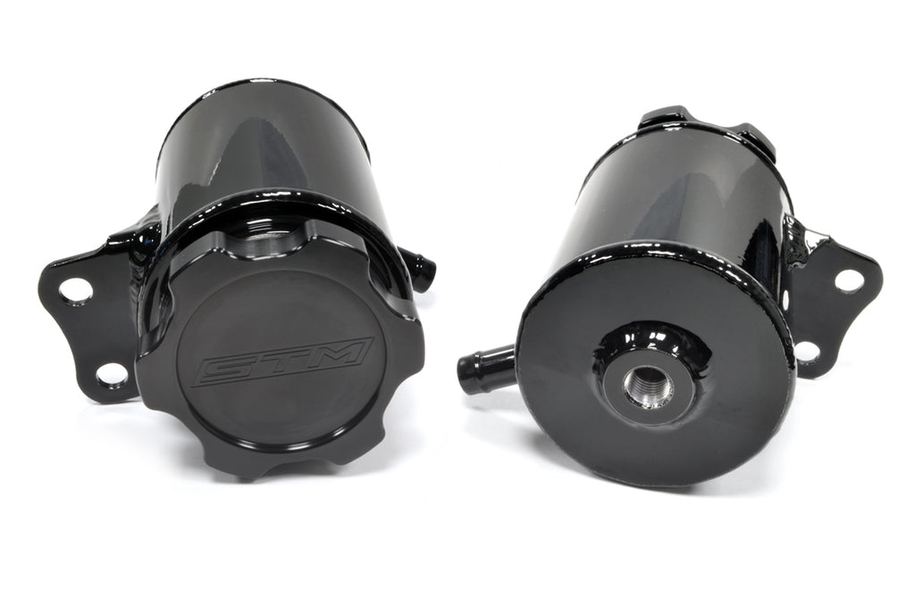 The STM 2G DSM aluminum power steering reservoir is a direct replacement for the factory piece. Available brushed, wrinkle or gloss black. Includes the 3" STM black cap, stainless hardware and hose clamps for a clean and simple install.