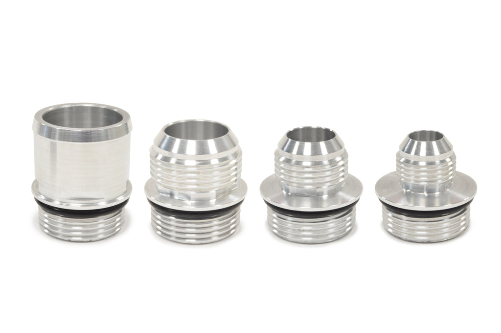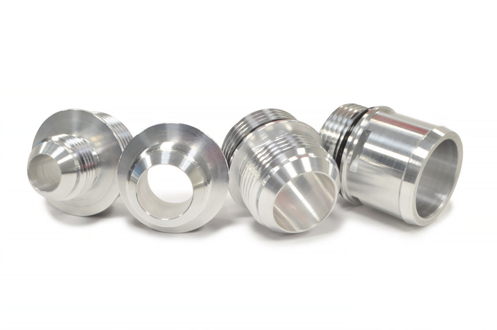 STM replacement fittings for the STM Evo 6-9 billet water neck. If you've changed your radiator setup, STM also offers these interchangeable outlet fittings individually for the 35mm stock hose, 10AN, 12AN or 16AN lines.