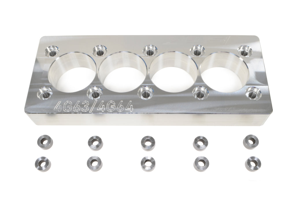 The STM 4G63/4G64 engine torque plate is made in-house at STM from 6061 billet aluminum and includes a set of 4130 chrome-moly inserts to protect your plate during torque down. Can be used with 4G63/4G64 up to 88mm bore.