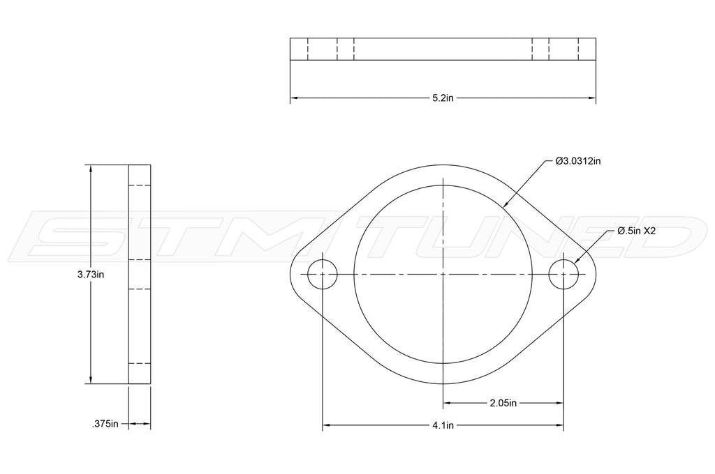 This STM stainless steel 3" 2-bolt exhaust flange is perfect for anyone fabricating a custom exhaust. This flange has a 3" inner diameter, 2-bolt design and is 3/8" thick. CNC Waterjet cut, USA made in-house at STM.