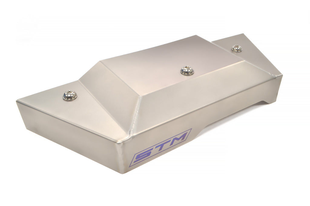 The STM titanium exhaust manifold heat shield cover attaches right to your factory, OEM exhaust manifold or cast FP manifold finishing off the look of your engine bay and helps to seal in the heat.