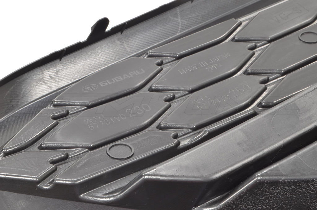 Genuine OEM Subaru front bumper fog light covers for 2022+ VB WRX. The 2024 WRX diagram is pictured for reference. These black plastic covers are sold individually as needed. Price is for one cover.