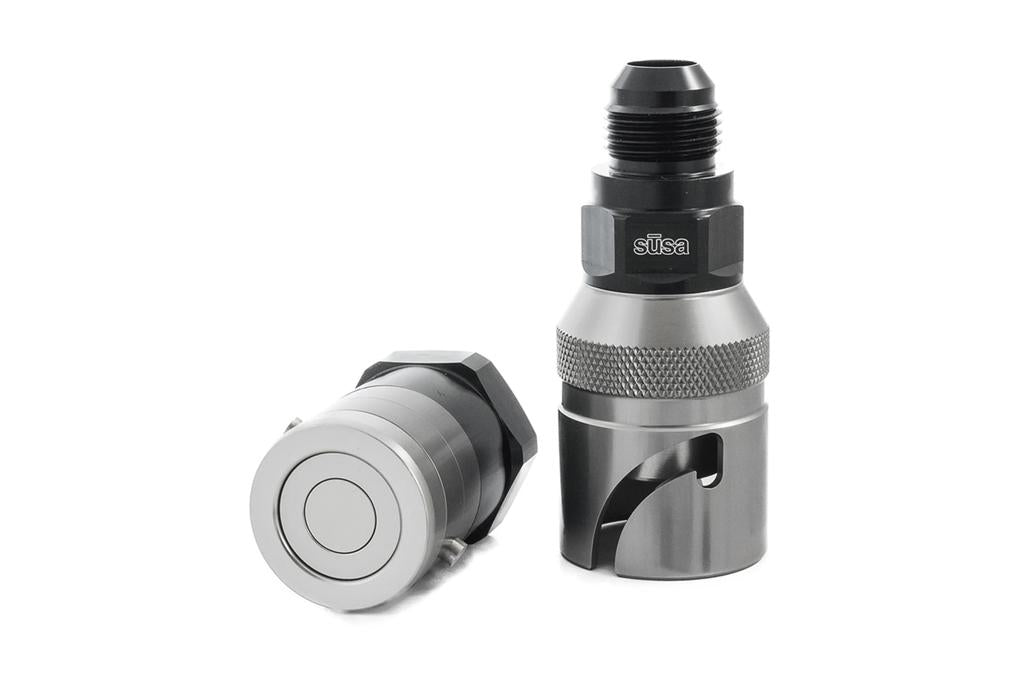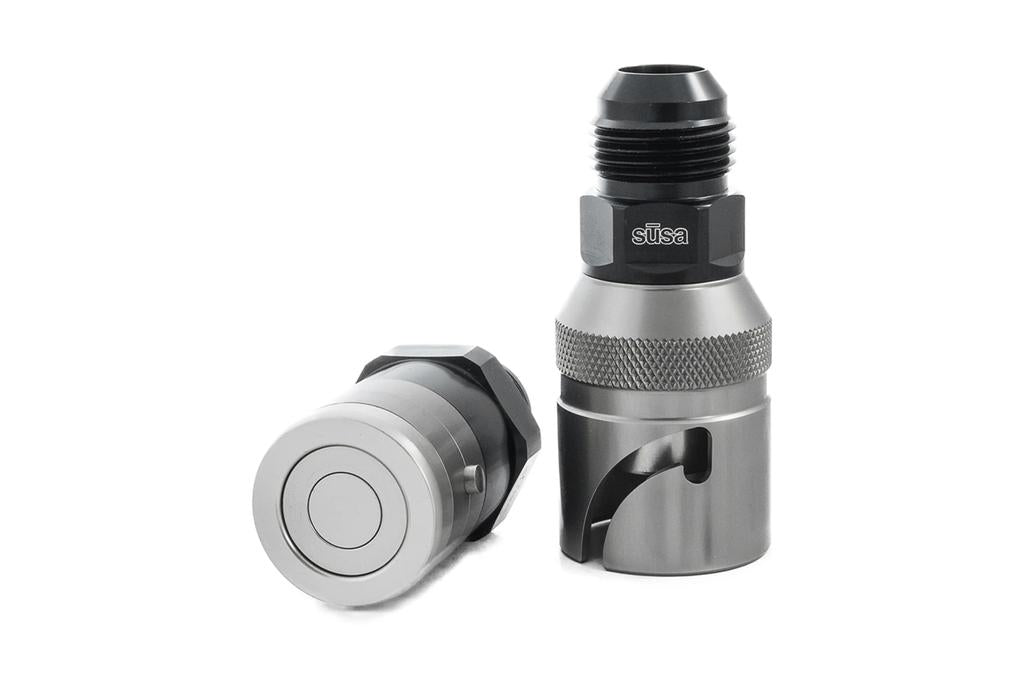The sūsa dry-break collection is designed for maximum flow and minimum pressure-drop. Machined from billet aluminum and finished in durable anodizing, all dry-break fittings offer a high-grip knurled pattern for easy handling.