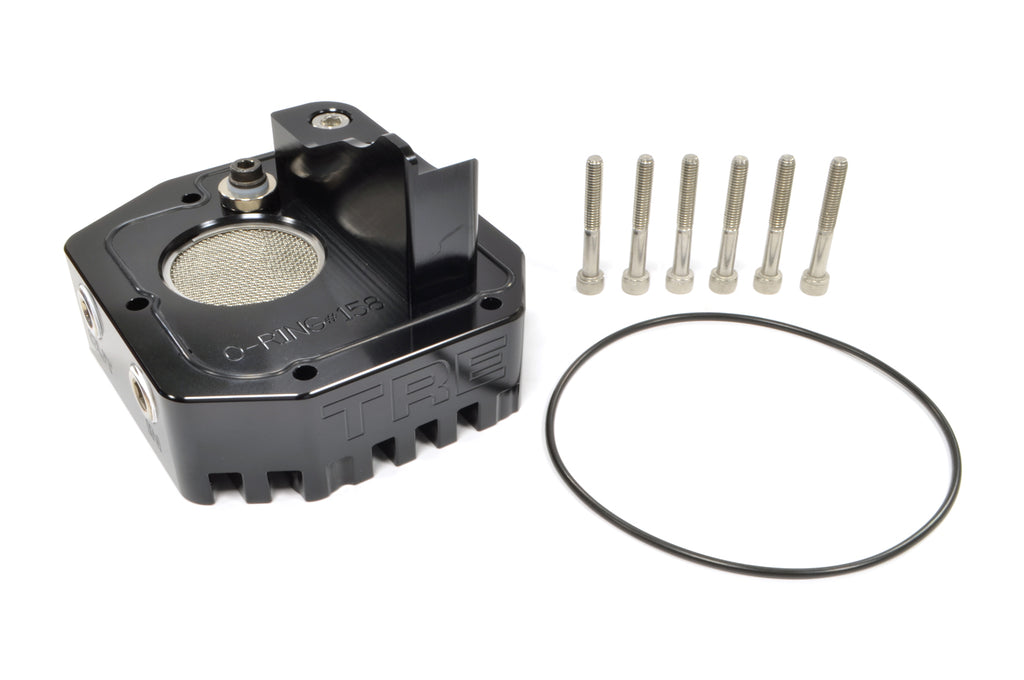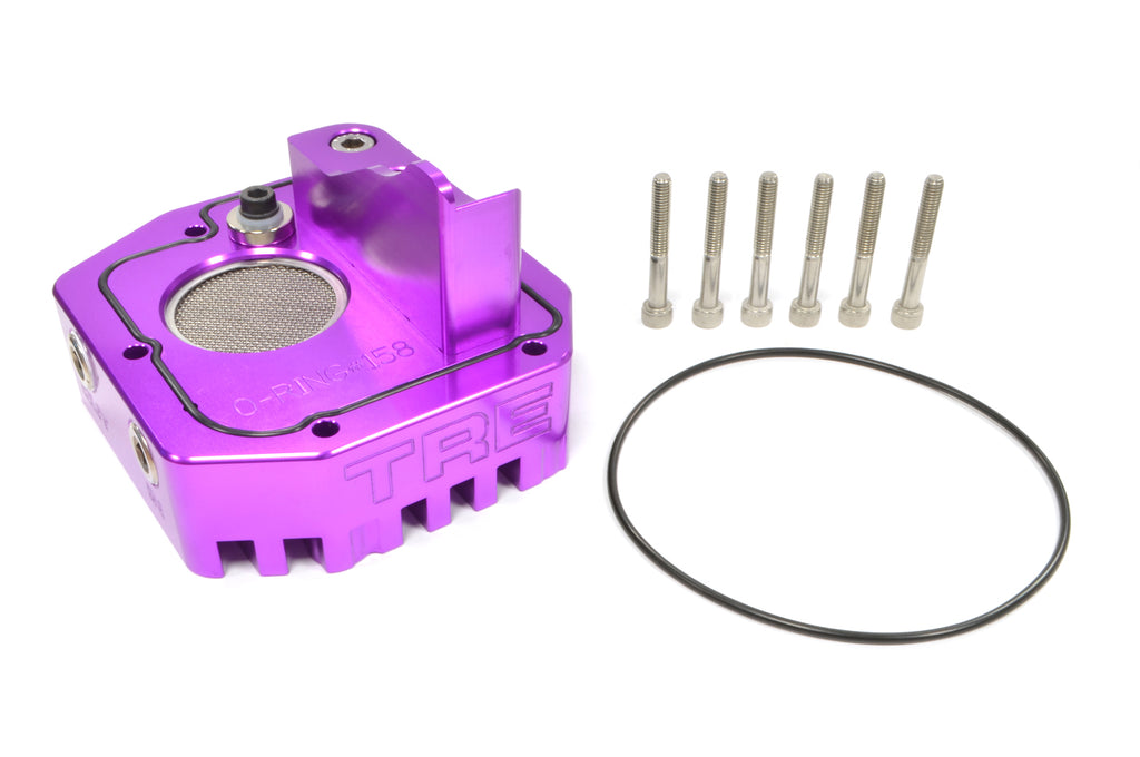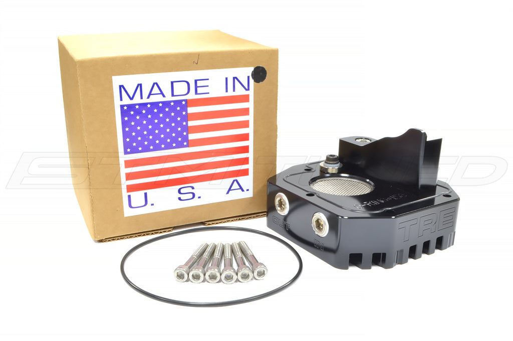 TRE (Team Rip Engineering) Evo 7/8/9 5-speed transmission oil cooler adapter plate offers improved oiling, improved cooling and a high-power magnet to collect metal fragments and contaminants in the oil.
