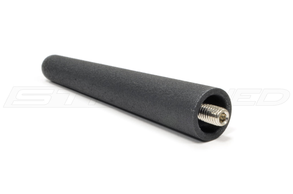 This Torque Solution 3" shorty antenna fits Base/GSR Evo X and 08-14 WRX/STi. Replace your long factory antenna with this sleek black upgrade. Now powdercoated with a durable wrinkle black finish that will not fade like anodized parts do in the sun. The set screw is adjustable to fit your car.